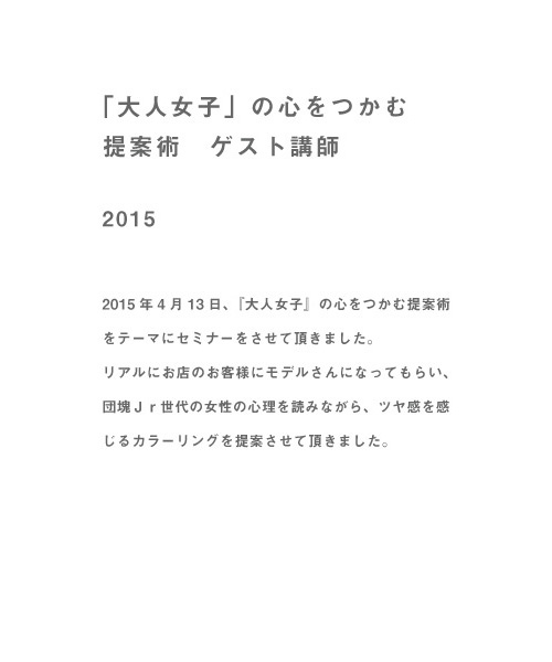 アンズグループでは、各種講習セミナー、ヘアメークアップ等をお受けしております。 企業プロモーション、モデル撮影、各誌撮影、イベントでの講習セミナーなど ご依頼がありましたら、アンズ(担当:NORIO)までご連絡下さい。